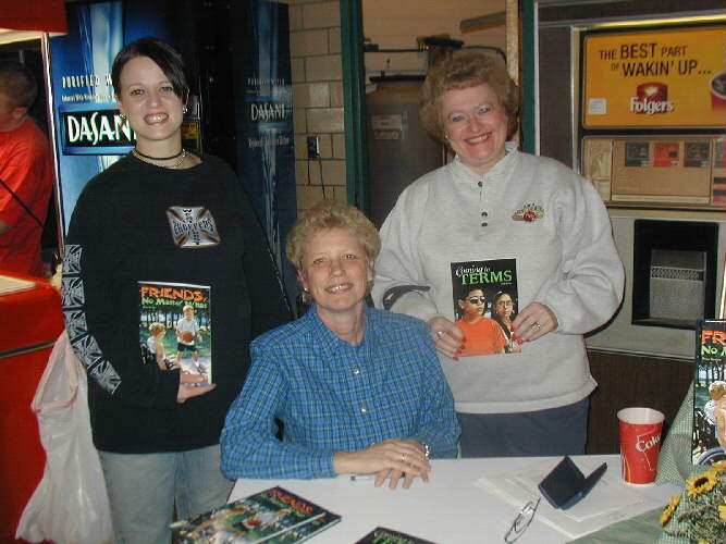 | Pegi and Mike | Pegi, flanked by two book buyers at a book signing in Des Moines, goes on to explain that her biggest accomplishment is having had two children's novels published. | Kelly, our son |