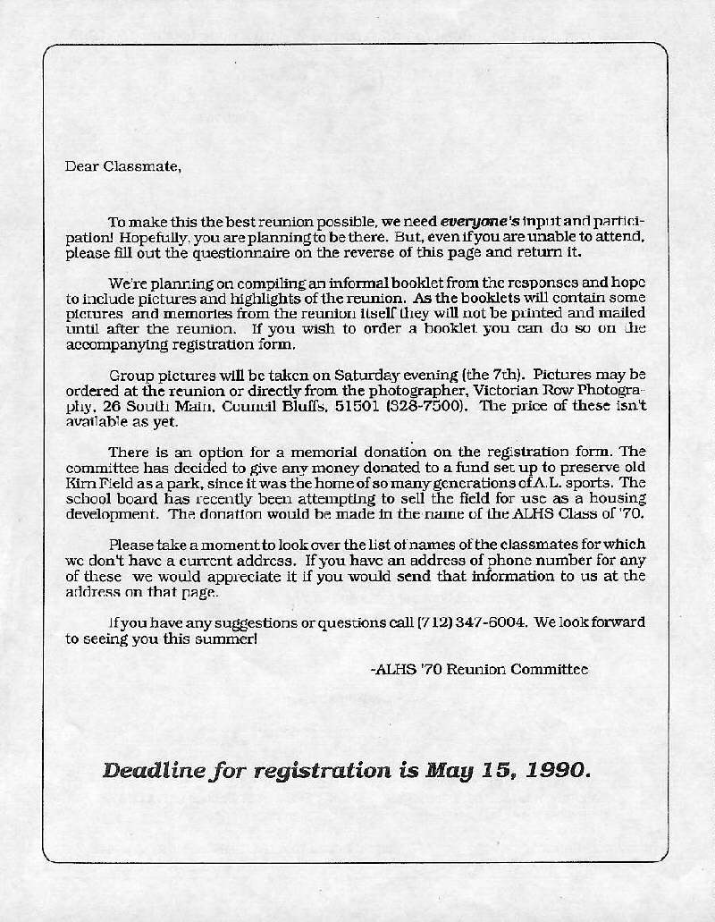 of any of the ALHS Class of 1970 Reunions, contact Bob