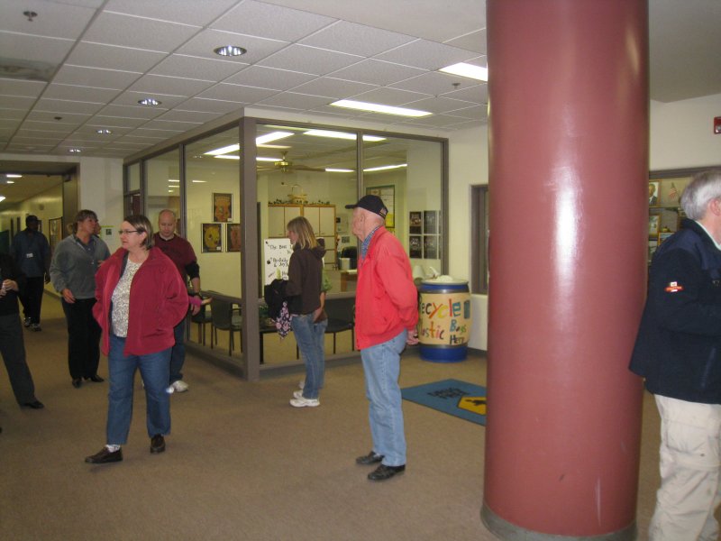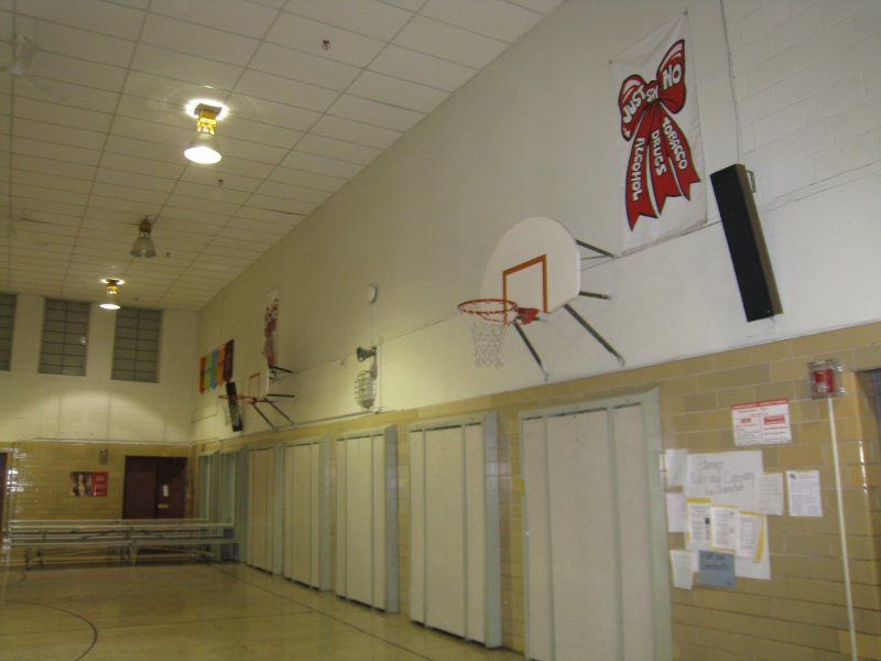toward the gym, girls at the opposite end of the hall, towards Mt.