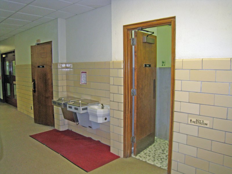 In our day on each floor the boys restrooms were at the end of the hall